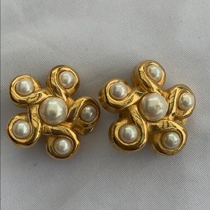 Faux Pearl and gold Floral earrings.