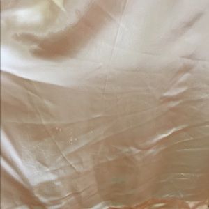 In good condition vintage satin dressing robe size s/m. Likely from 1930-1940s. Heavy peachy-pink satin. Self tie waist. Single hip pocket. Set in back pleat and full sweep on skirt. Robe has no major flaws but there are a number of small stains, scuffs to the satin and two pin sized holes to fabric. Most are located on the skirt and aren’t visible when being worn and hard to see when not wearing. See last 3 pics.