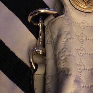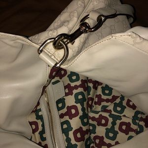 Gucci Hysteria Convertible Top Handle bag with strap in Guccissima embossed off white leather. Original dust bag included