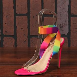 SZ 6 / 9 Rainbow Elastic Ankle Strap Clear Sandals