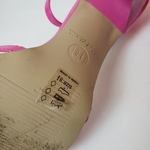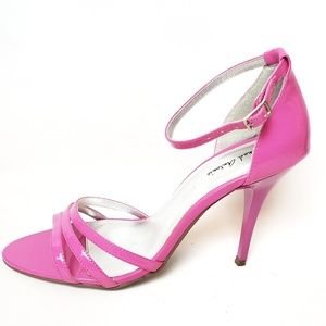 Michael Antonio glossy pink patent sandals with heels and ankle strap. Bring a pop of color to your summer outfits! Great for special occasions, wedding parties, or nights out.