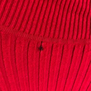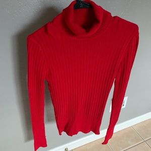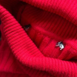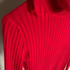 Red Turtleneck, tag was cut out since it was itchy but it’s an xs and tight fitted but SUPER STRETCHY! Loved but still a lot of life left