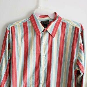 CEZANI Men's Size Large Long Sleeved button up Shirt ~ Green/Red Striped. Condition is Pre-owned.