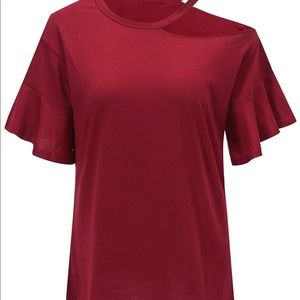 Solid Short Ruffles Sleeve Casual Shoulder Lightweight Tunic Tops Loose Blouse T Shirts