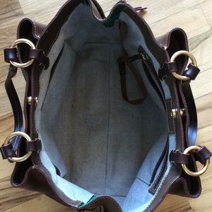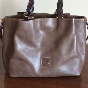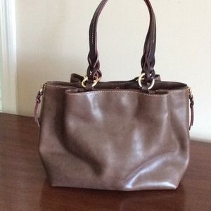Elephant color (not grey, a soft grey brown). Perfect neutral! Small mark on bottom right (see pic). Saddle leather which will become more rich over time. Soft pleats, side zips, and micro suede detailing. Magnetic closure. 1 interior zip pocket. 3 additional interior pockets. Key hook inside. Very clean. Comes w registration card. Smoke free home.