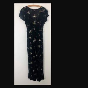 UO Marie Prairie Wrap Jumpsuit Black Floral Pants