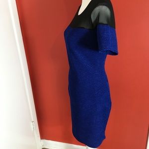 love J Ladies/Juniors blue crinkle & black sheer top short sleeve dress, size M