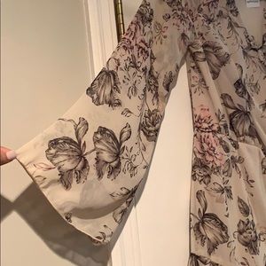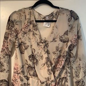 NEW WITH TAGS. Beige romper with brown and pink floral pattern. Flowy arms. Sheer material with front and bottom lined. From a small boutique in New Jersey. Super cute for a Spring/Summer date night !!