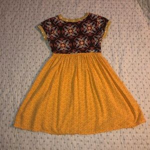 ADORABLE MATILDA JANE DRESS! Worn once by my daughter before she grew out of it! Perfect condition! Color is a beautiful mustard yellow/ gold & brown. Feel free to make a reasonable offer!