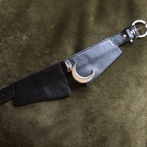 The will have you dancin’ in the pale moonlight. Sway into the midnight hour with this collar style choker that has a statement moon charm with stud hardware and an adjustable D-ring buckle closure.