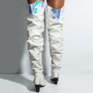 NEW🔥Slouchy Over The Knee Cowboy Boot Chunky Heel
