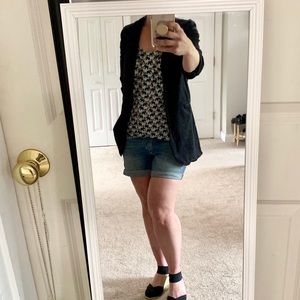 Survival Black Blazer with elastic on back for a flattering fit. 3/4 sleeve with elastic