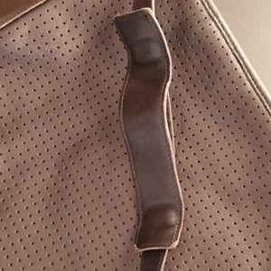 Pure leather Coach bag. Entire bag is leather and very large bag. Not from outlet. Coach store 15 years ago. Used 2 times. Inside line is clear. No wear and tear.