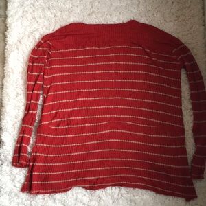 This Free People top has a v-neck, stripes, and raw edges throughout. Fabric is soft and comfy. Size small.