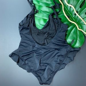 NASTY GAL|| BLACK NADIA RUFFLE ONE PIECE SWIM SUIT