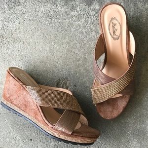 Italina DW7480 Brown Bronze Metallic Criss Criss Rhinestone Wedge