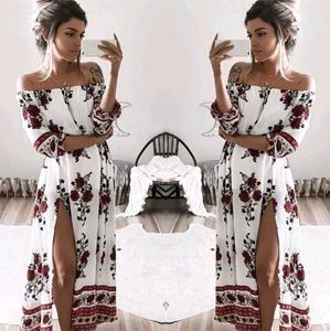 Bohemian Off-Shoulder Floral Hippie Dress