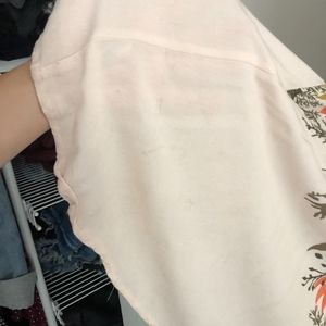 Light pink floral dress. Flow fit. Worn once to a college formal. Small dirt stain on side which could probably be removed.