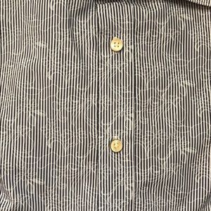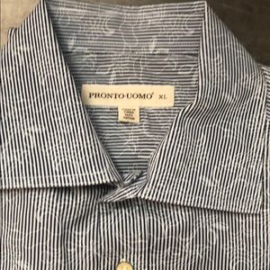 Nice blue stripe dress shirt from Pronto Uomo with white floral pattern throughout. Great condition!!