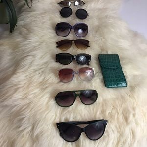 EUC 8 NO NAME SUNGLASSES & ALLIGATOR SKIN CASE. Excellent condition, all colors and shapes. Cat eyes, round, tortoise shell and aviator styled. Emerald colored faux reptile skin case.
