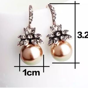These are great earrings to dress up or down. Lightweight and stunning. Faux Pearl's are a light coffee shade with silver metal and rhinestone accents. Hook earrings. Only coffee pearl choice available at this time. They arrive boxed in an organza bag.