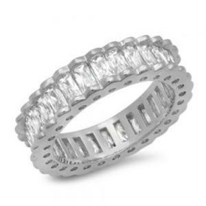 White or Yellow 18 karat Gold Plated Eternity Ring with Baguette Cz Stones; eternity band ring 3 mm; wedding band; for more sizes and this ring in white gold go to my closet. 817005