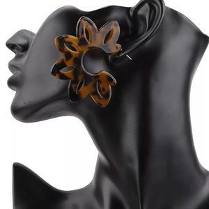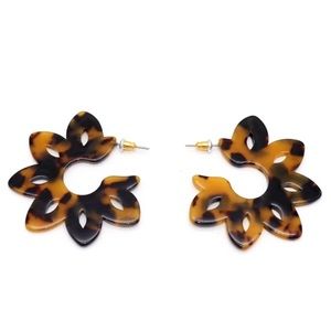 Trendy Dark Tortoise Color Acrylic Floral Petal Hoop Earrings! 🌺A fun Fashion-Forward Accessory!🌺