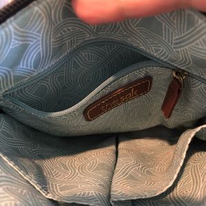 Leather crossbody bag. 9”x8” leather body with non leather shoulder strap. Light so it won’t hurt your shoulder when wearing.