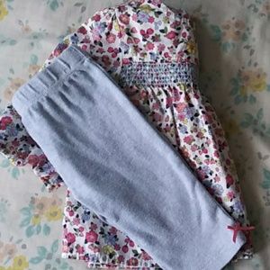 Both are size 6 months. The dress is carters like new! Includes matching diaper cover. The other outfit is Little Me brand. Also in excellent condition. Comes with match bottom .