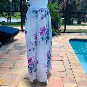 9 This Chiffon maxi floral skirt is a light weight swing skirt. Perfect to wear with a white t-shirt and jean jacket, or dress up with a black cami for a night out.