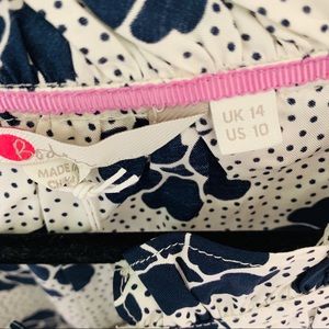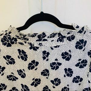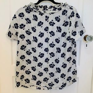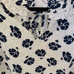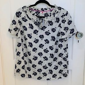 NWT Boden blouse. Size 10. White with navy blue polka dots and flowers. The detail in the front, as pictured. No rips, stains, or flaws. Excellent condition.