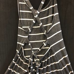 Gray and white stripe maxi dress cross cross back. Never worn.