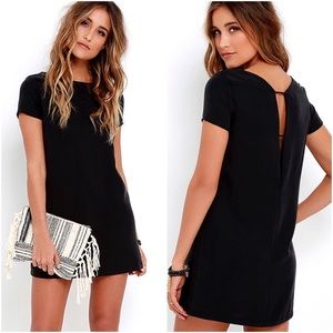 Lulu’s women’s size XS black short sleeve Mini Shift dress with back cutout. Soft woven fabric made of tencel. Scoop neckline. Unlined. Great used condition - only flaw is that one of short straps on the back needs to be restitched.