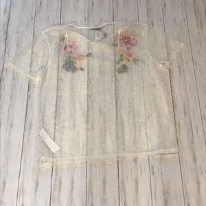 Short sleeve lace shirt with floral details on front of shirt