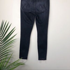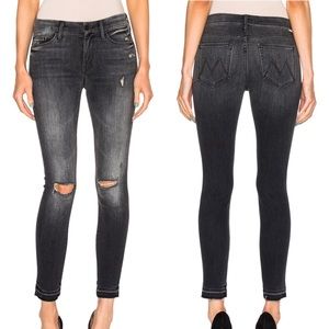 MOTHER Denim the Looker Jean with undone ankle hem. Color is stealing shadows. Undone hem. Washed black to grey fading. Distressed and ripped knee details. Gently loved, EUC. Fits true to size, order your regular size.