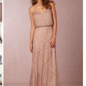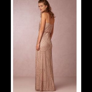 This stunning blouson dress adds dramatic sophistication to your most memorable occasions. The taupe-blush hue and beading throughout make it endlessly chic. By Adrianna Papell.