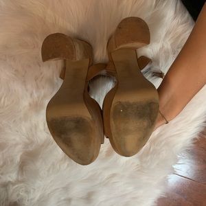 these heels are so cute & make any outfit. They go with everything! i only worn them a couple times so they have a few dings just because they are that velvet material but it’s still in great condition!