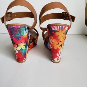 Bamboo Open Toe Vibrant Floral Wedge Heels