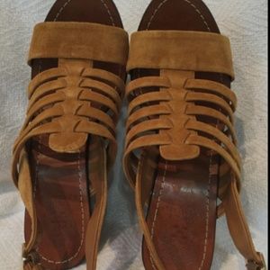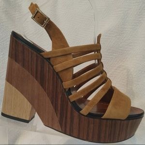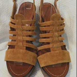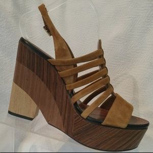 Vince Camuto Brown Suede Wood Platform Wedge 9.5