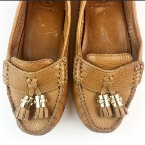 TORY BURCH Tan Leather Lawrence Tassel & Logo Loafers Driver Moccasin Flats 5