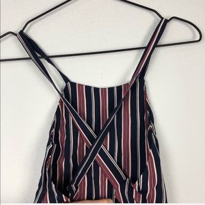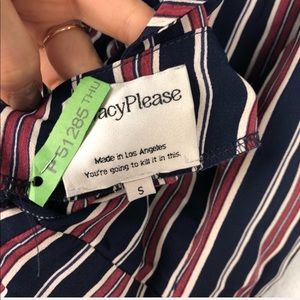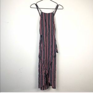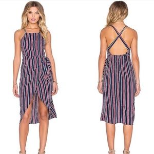 Privacy Please women’s size S multicolored striped Nassau wrap dress in York. Blue, white and berry red colored stripes. Midi length. Cross straps, low back. Hidden back zipper. Unlined. 19” across hips. Bottom half is wrap style so with movement, it opens up a bit. Freshly dry cleaned. Sold at Revolve. Excellent condition
