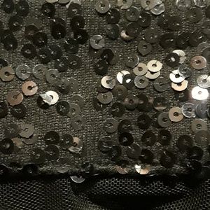Black dress with matching jacket. The dress is Polyester and Spandex material. Black Sequin details around neck line of dress and on the cuffs of the jacket. The jacket is Mesh, polyester and Spandex material. Like new Condition. Worn once.