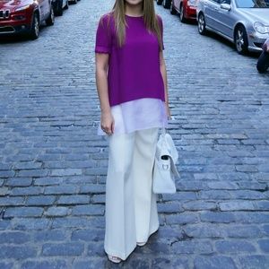 An airy silk organza lining extends beyond the hem of the Lucinda top, creating a layered look that flutters in the breeze.