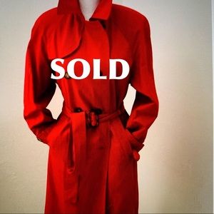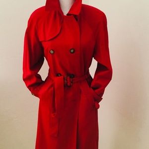Vibrant Red Short Trench Coat, Larry Levine, Small. Gently worn, excellent condition.