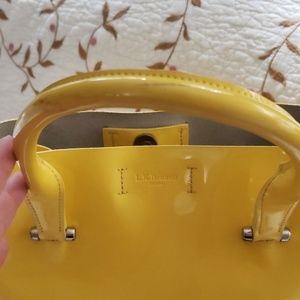 GUC yellow patent leather LK Bennett London bag. Please inspect photos closely! Front of bag only has minor marks but the back of the bag has quite a few!