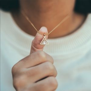 A delicate triangle Teepee emblem is adorned by a radiant crystal and hung on a dainty brass chain. Wear this necklace as a reminder that people come and go but your tribe is forever.