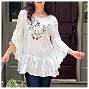 Bohemian embroidered white bell sleeves tunic top