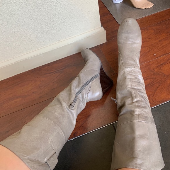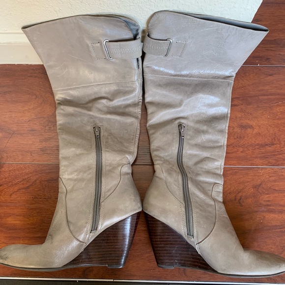 Nine West Grey Leather Tall Wedge Boots