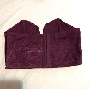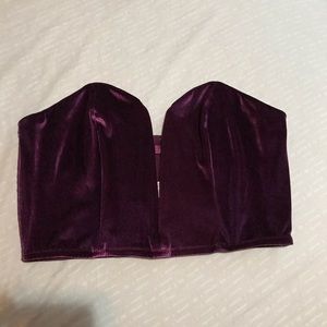 Dark purple. New without tags. Velvet front with a lace back. Adjustable straps in the back. Cute for going out for dinner!
