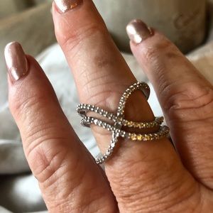 The design of this ring is really different it’s a crisscross pattern ....Size 8 silver with CZ’s